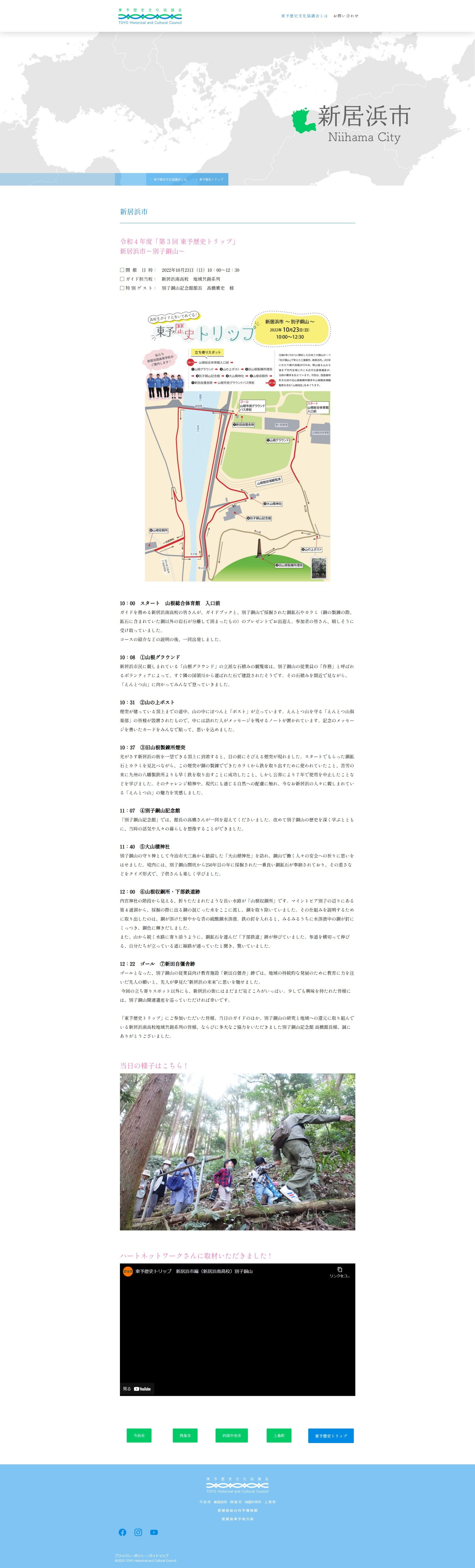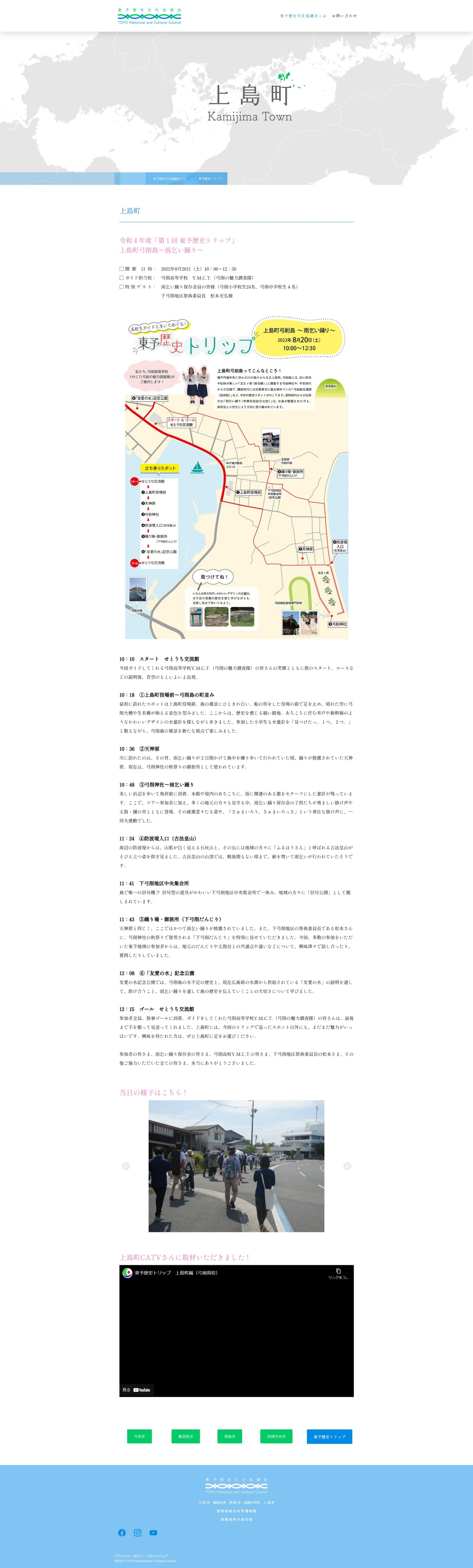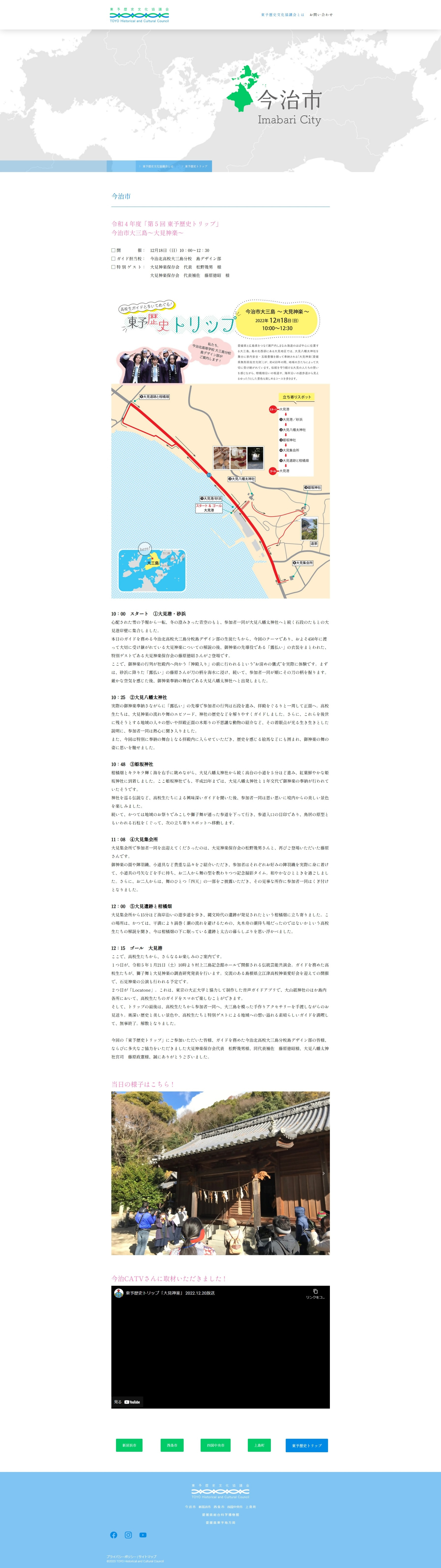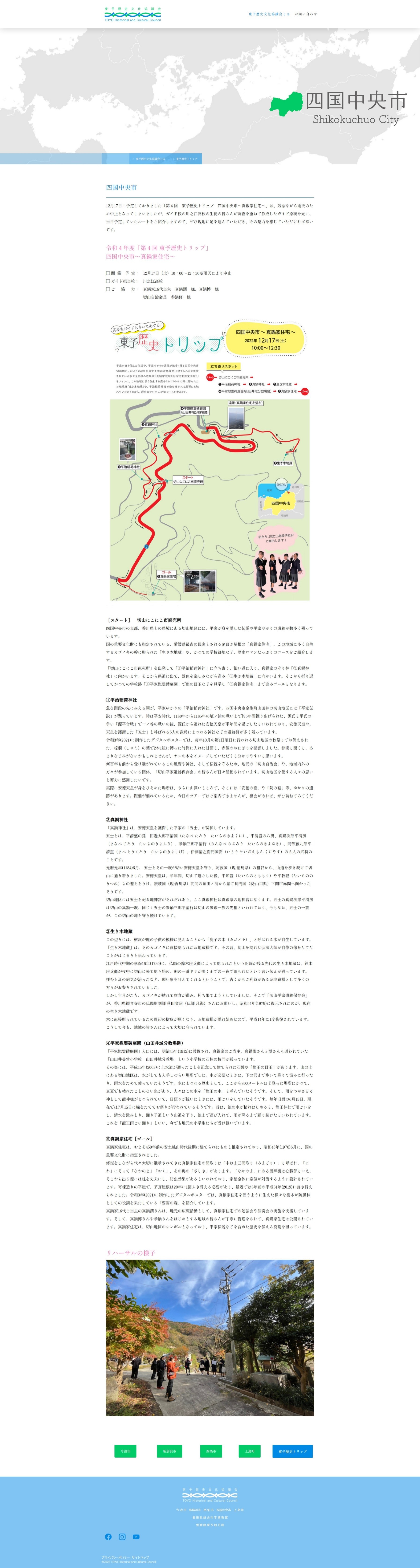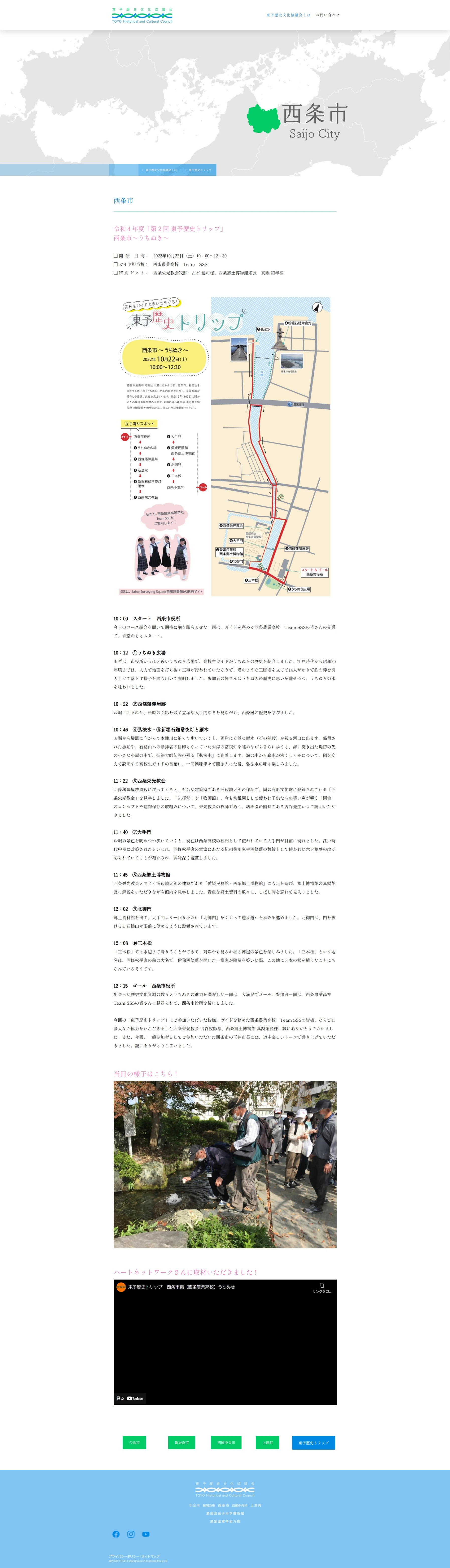 地域の歴史を物語る地域資源の魅力を体感する、2時間半の歩きツアーです。東予の魅力を発信するために集まった地元高校生が、調査研究を重ねたテーマを中心にそれぞれのまちをご案内します。