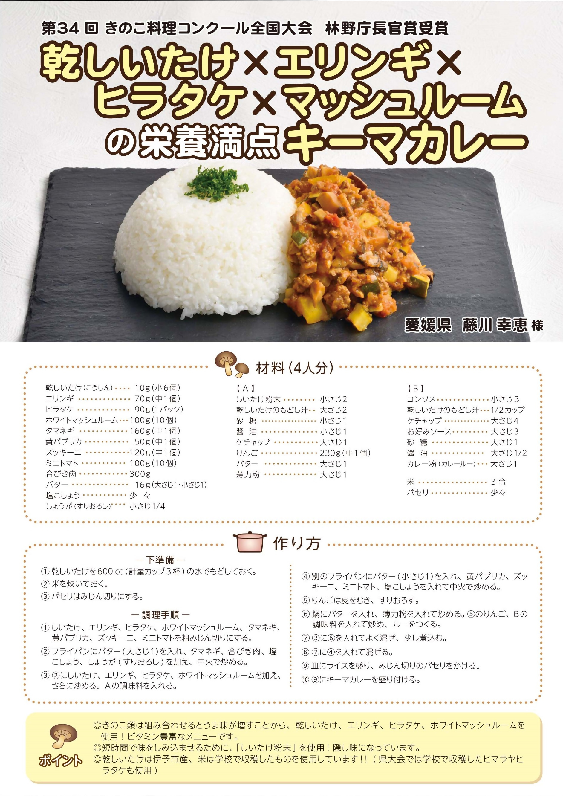 きのこ料理コンクール全国大会に出場された方のレシピを公開します。(随時更新予定)