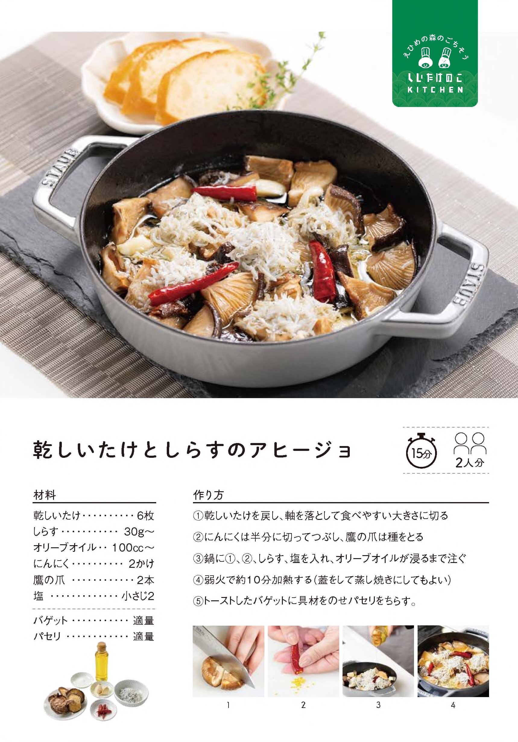 レシピカードはこちら → レシピカード「乾しいたけとしらすのアヒージョ」 [その他のファイル/696KB]